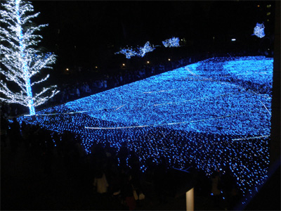 なんか徐々に流れ星みたいに白い光が走ってって、いきなり全面ばーーーーっと青くなったり。去年より見応え合ったかも。